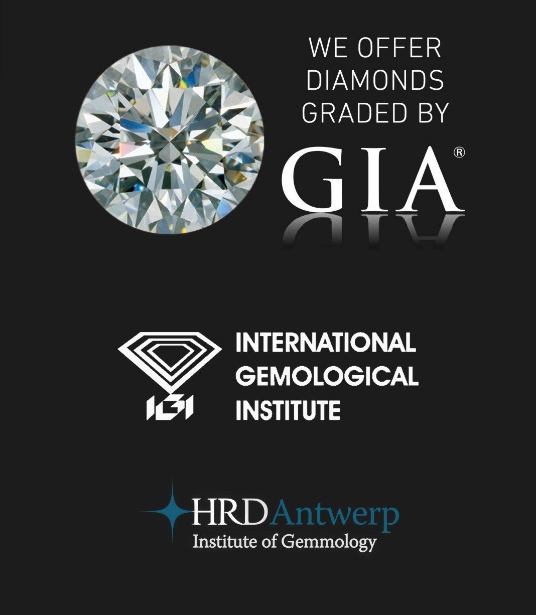 We also offer certifications from other recognized laboratories, such as HRD (Antwerp) & IGI - International Gemological Institute (Worldwide), who also grades & certifies diamonds using International Diamond Grading System by GIA.
